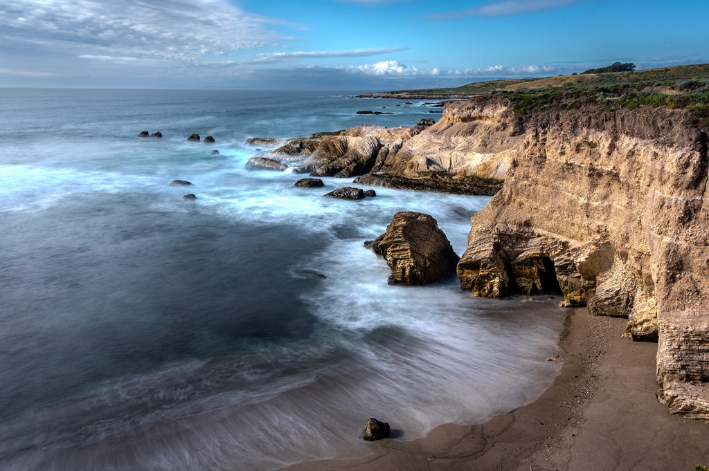 Yesterday, I went on an expedition with the express purpose of sharpening my skills with my neutral density filter — which is to say, I went looking for moving water. Given that I live a few hundred steps away from the Pacific coast, it didn’t really take a lot of looking; I threw some kit into the car and took a drive out to the splendid Montaña de Oro State Park, then hiked in to a beautiful overlook and prepared to practice.
